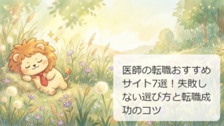 マイナビDOCTORとリクルートドクターズキャリアは、面接同行や条件交渉の代行など手厚いサポートが特徴。初めての転職で不安な人に向いてるよ。